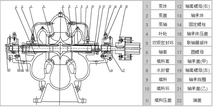 S型單級雙吸水平中開式離心泵結(jié)構(gòu)說明: