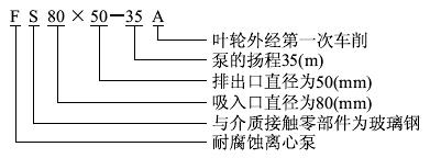 FS型耐腐蝕玻璃鋼離心泵型號意義: